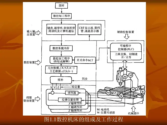 其中這里的“紙帶TAPE”是指一種存儲程序的媒介,把程序用穿孔機記錄在紙帶上,再把紙帶上記錄的程序輸入到數控機床中; 并且隨著存儲技術的發展現在已經不再使用紙帶來記錄程序了,多數情況都是用快速閃存或磁盤來記錄程序。 “磁帶”“磁盤”是“紙帶”發展演化后現代機床大多都會配備的部件。