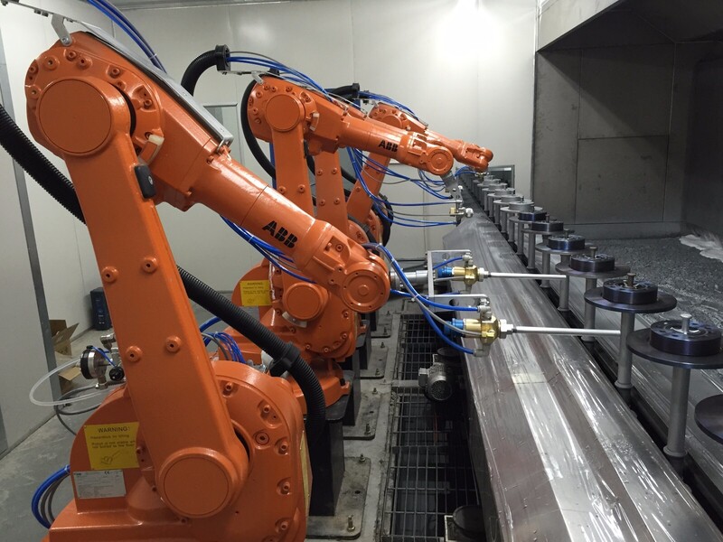 是用噴粉設備(靜電噴塑機)把粉末涂料噴涂到工件的表面,在靜電作用下,粉末會均勻的吸附于工件表面,形成粉狀的涂層;粉狀涂層經過高溫烘烤流平固化,變成效果各異(粉末涂料的不同種類效果)的最終涂層。